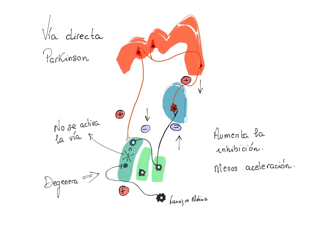 Figura 3. Desequilibrio de la vía directa en la enfermedad de Parkinson.